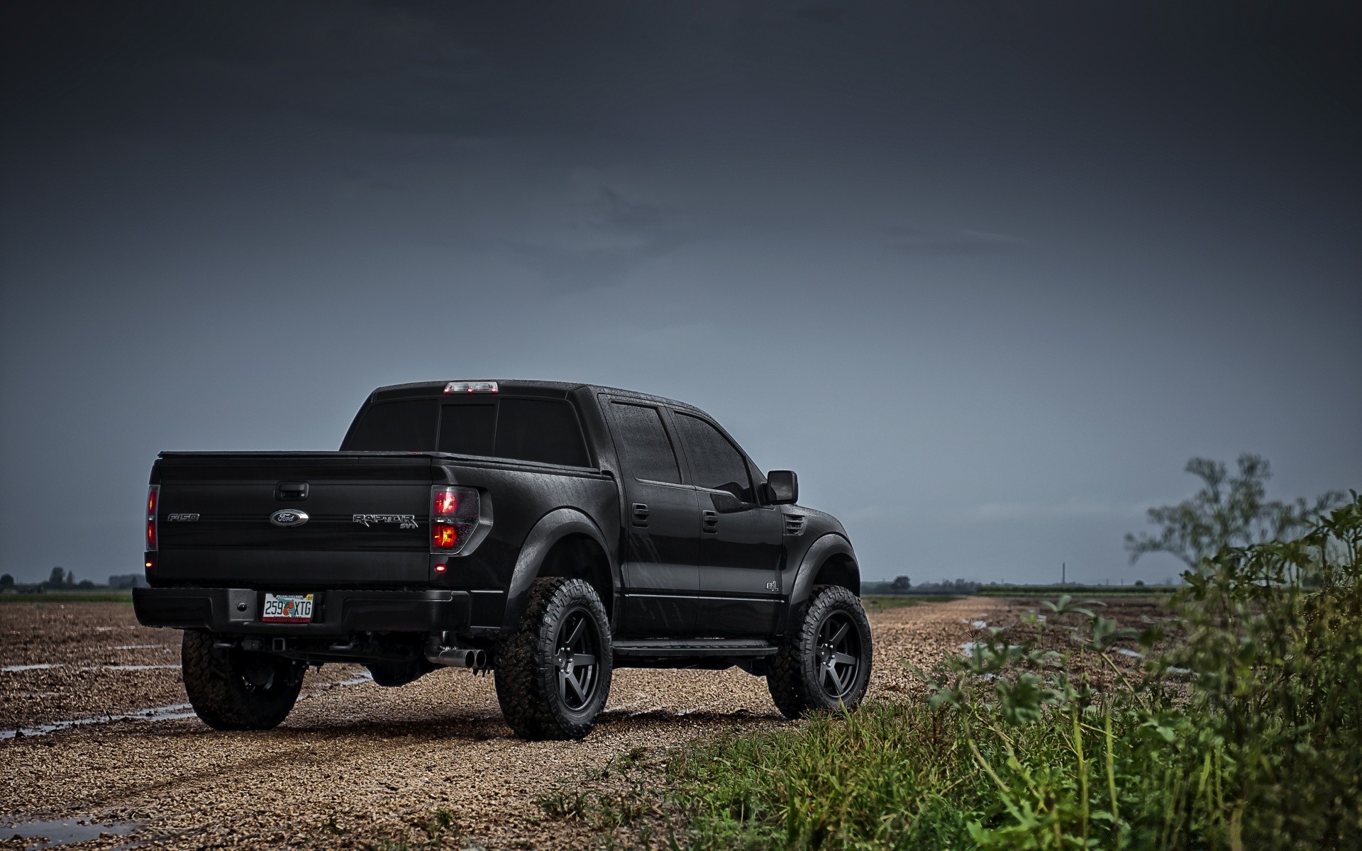 Inszeniertes Foto eines Pickups auf einem Feldweg