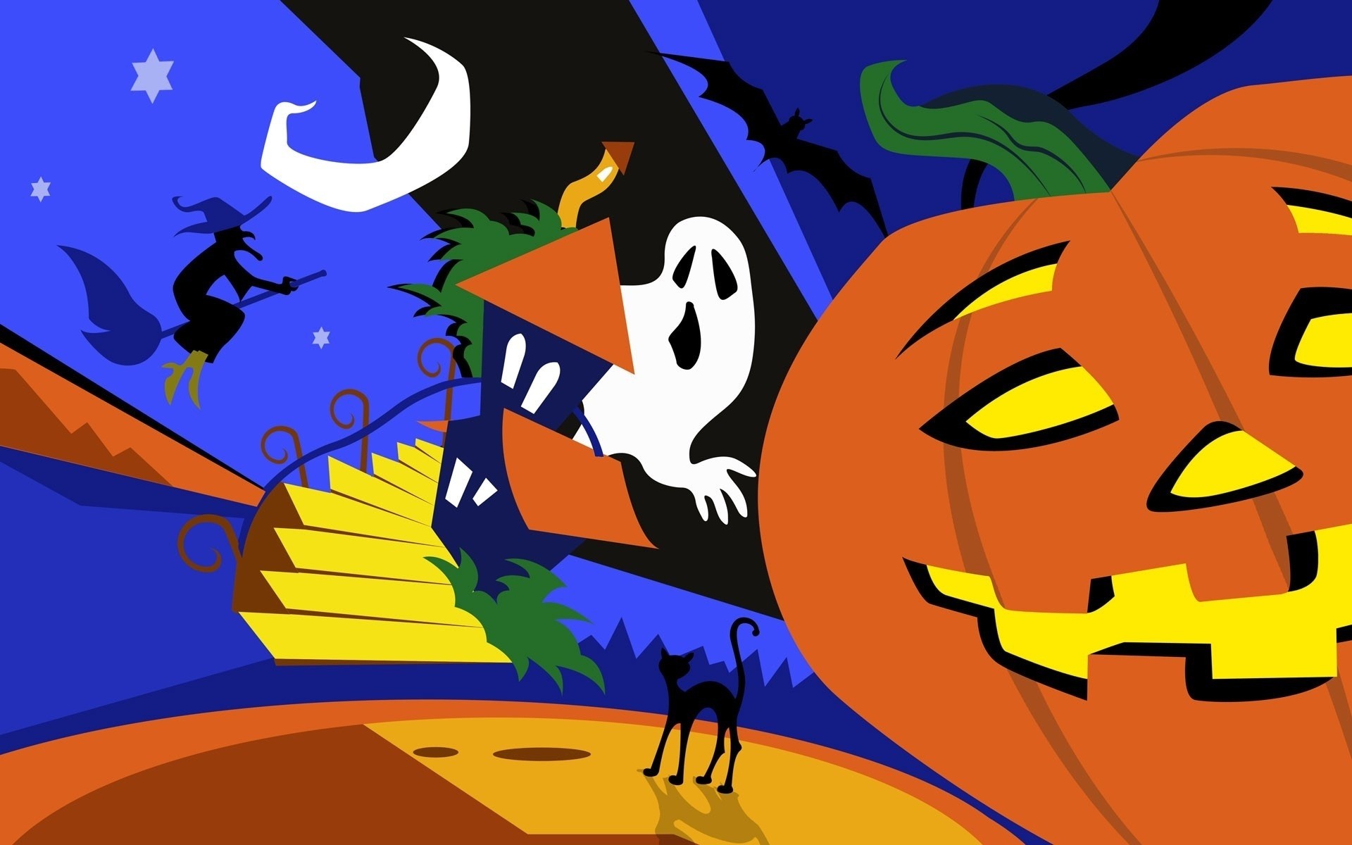 Bunte Illustration für Halloween mit Parfüm und Kürbis