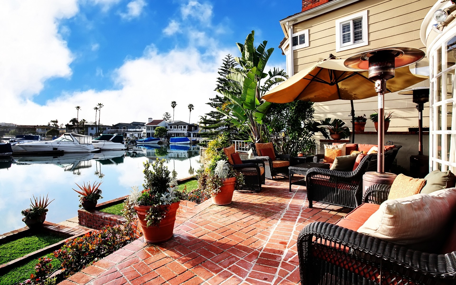 Gelbe ha-Bäume im Hintergrund der Berge spiegeln sich im Wasser wider