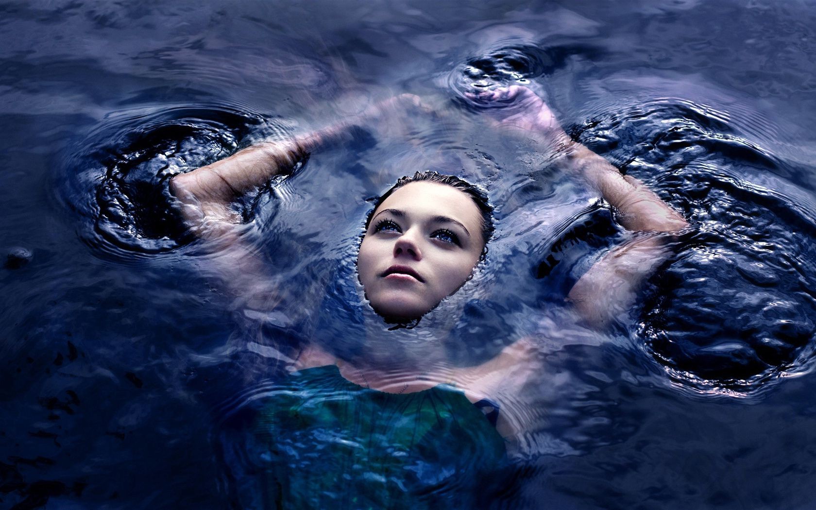 Schönes Mädchen liegt im Wasser