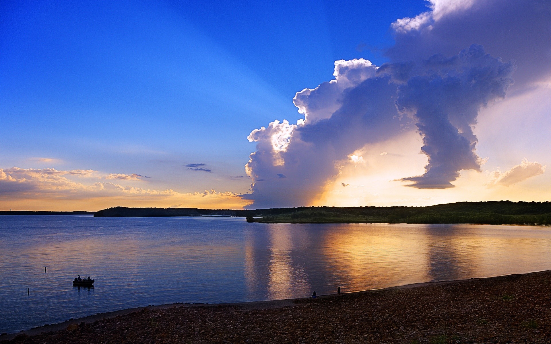 Der bewölkte Abendhimmel spiegelt sich im Wasser wider