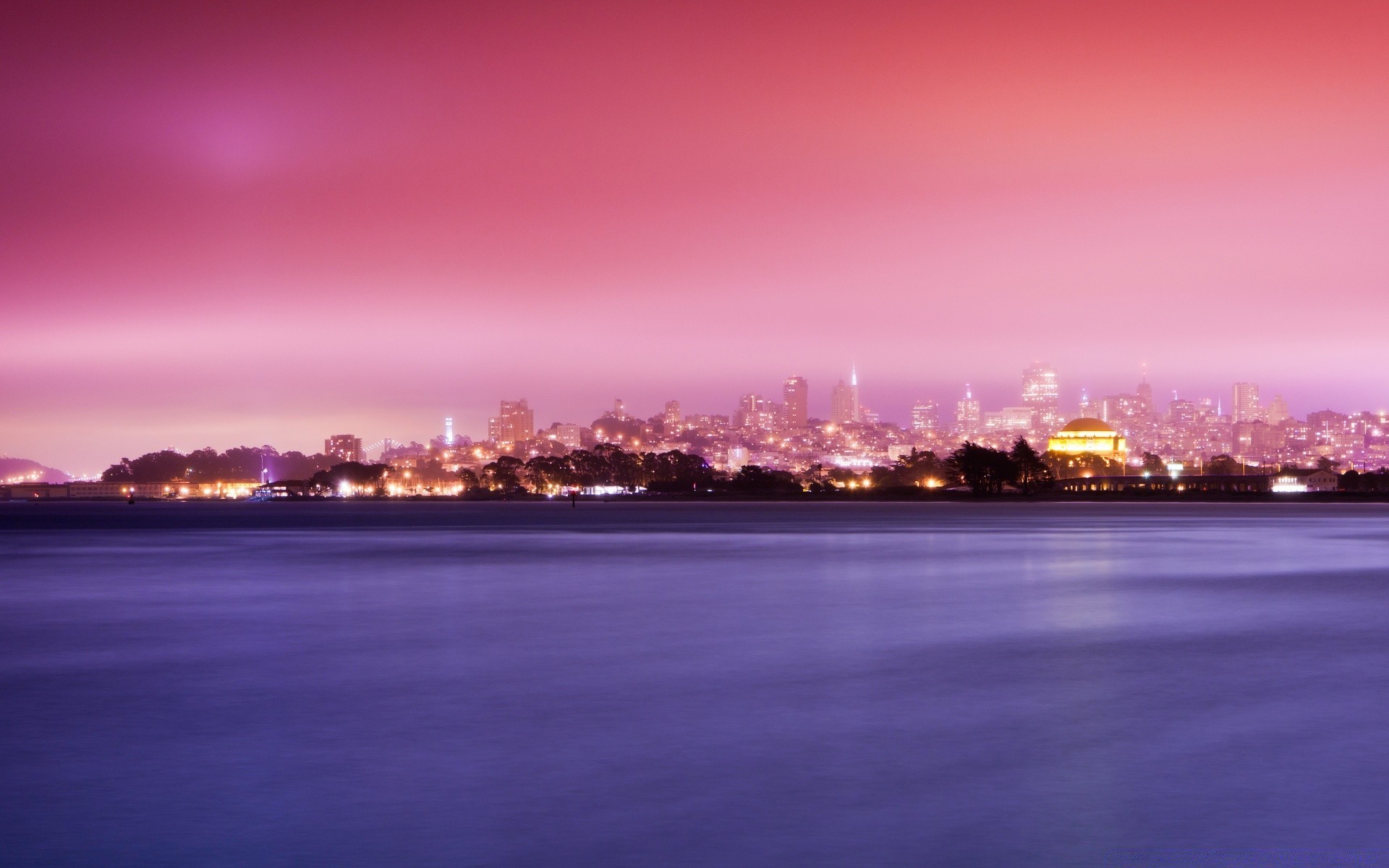 Andere Städte. Sonnenuntergänge und Morgendämmerung im Wasser