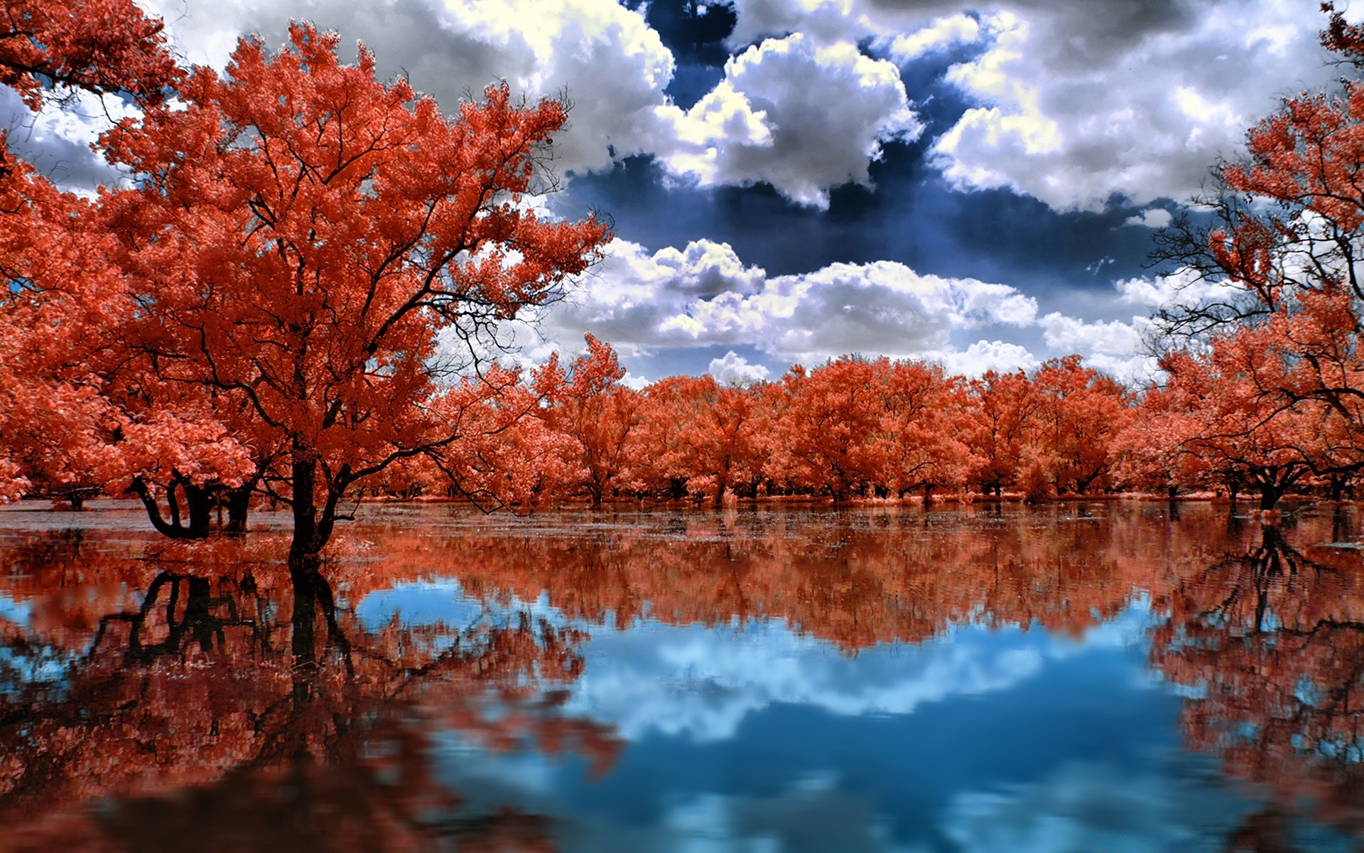 Ein schöner Himmel, der sich im Wasser widerspiegelt