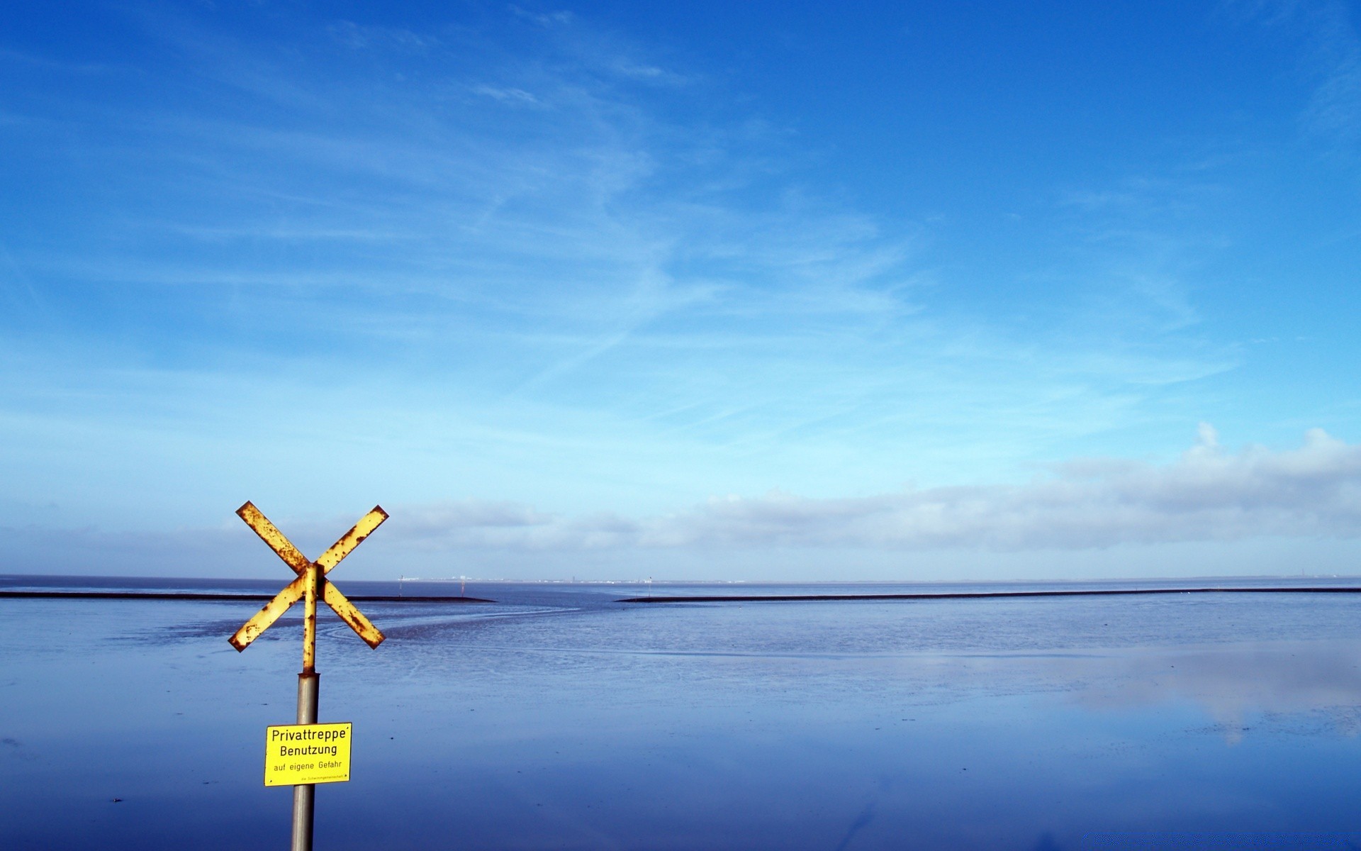 Der orange Sonnenuntergang spiegelt sich im Wasser wider
