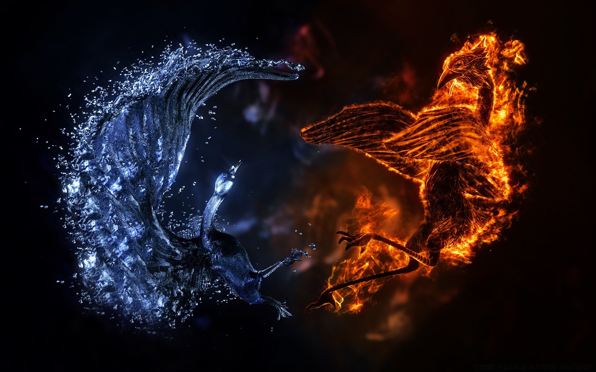 Fantasy bild eine mischung aus wasser- und flammenenergieFantasy Bild eine Mischung aus Wasser- und Flammenenergie