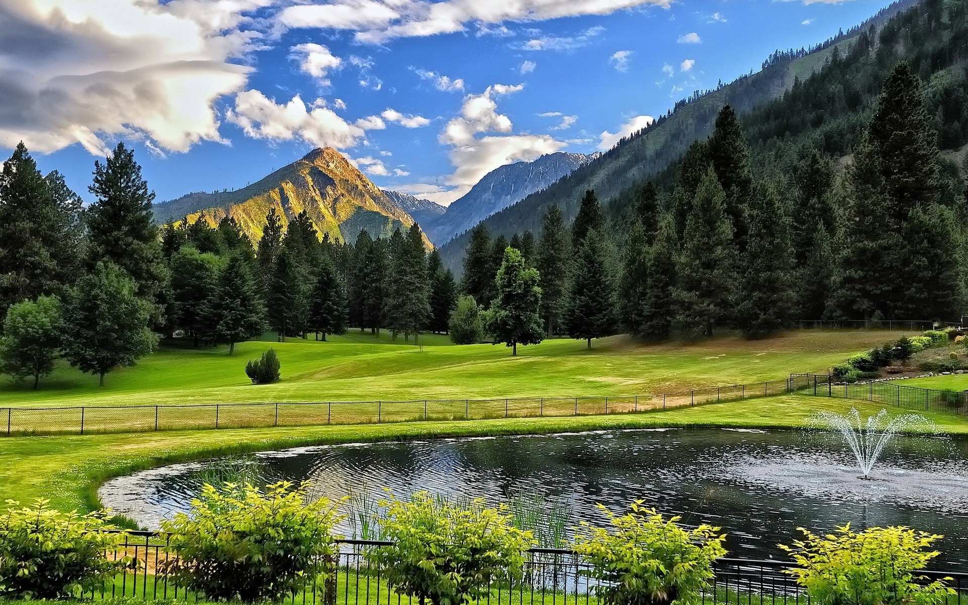 Ein See mitten in den Bergen; im Freien strömt ein altes Spiegelbild der Zeit