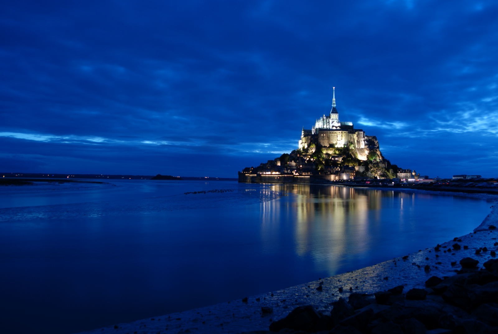 SCHLOSS AUF DER HALBINSEL IN DER NACHT MIT BELEUCHTUNG