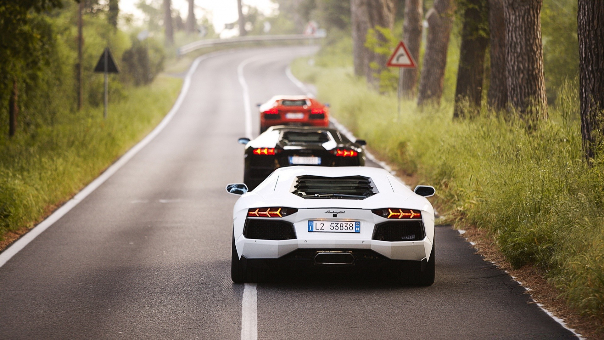 Drei Autos in einer Reihe fahren die Straße entlang