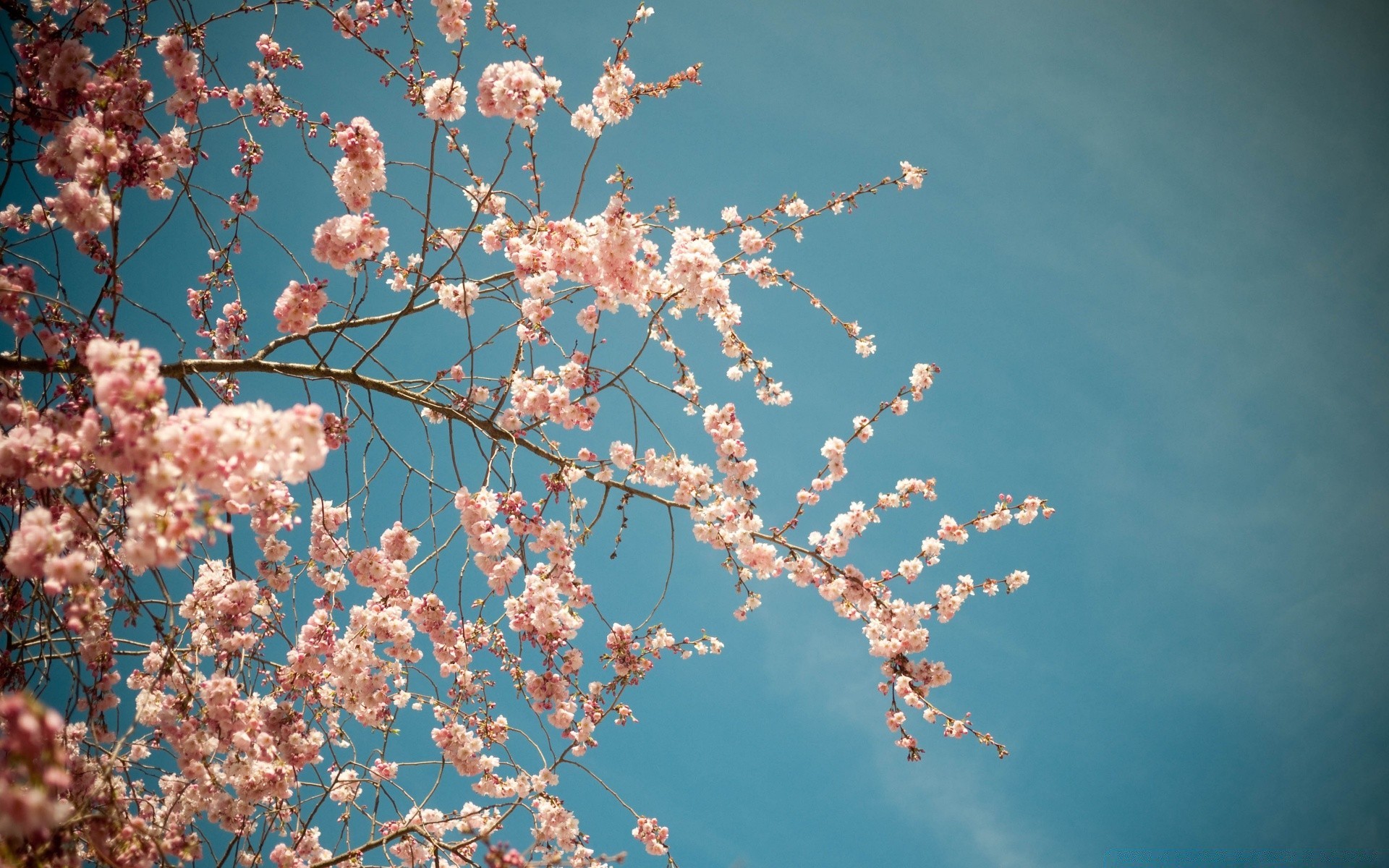 Kirschzweige in voller blüte vor einem blauen himmelshintergrundKirschzweige in voller Blüte vor einem blauen Himmelshintergrund