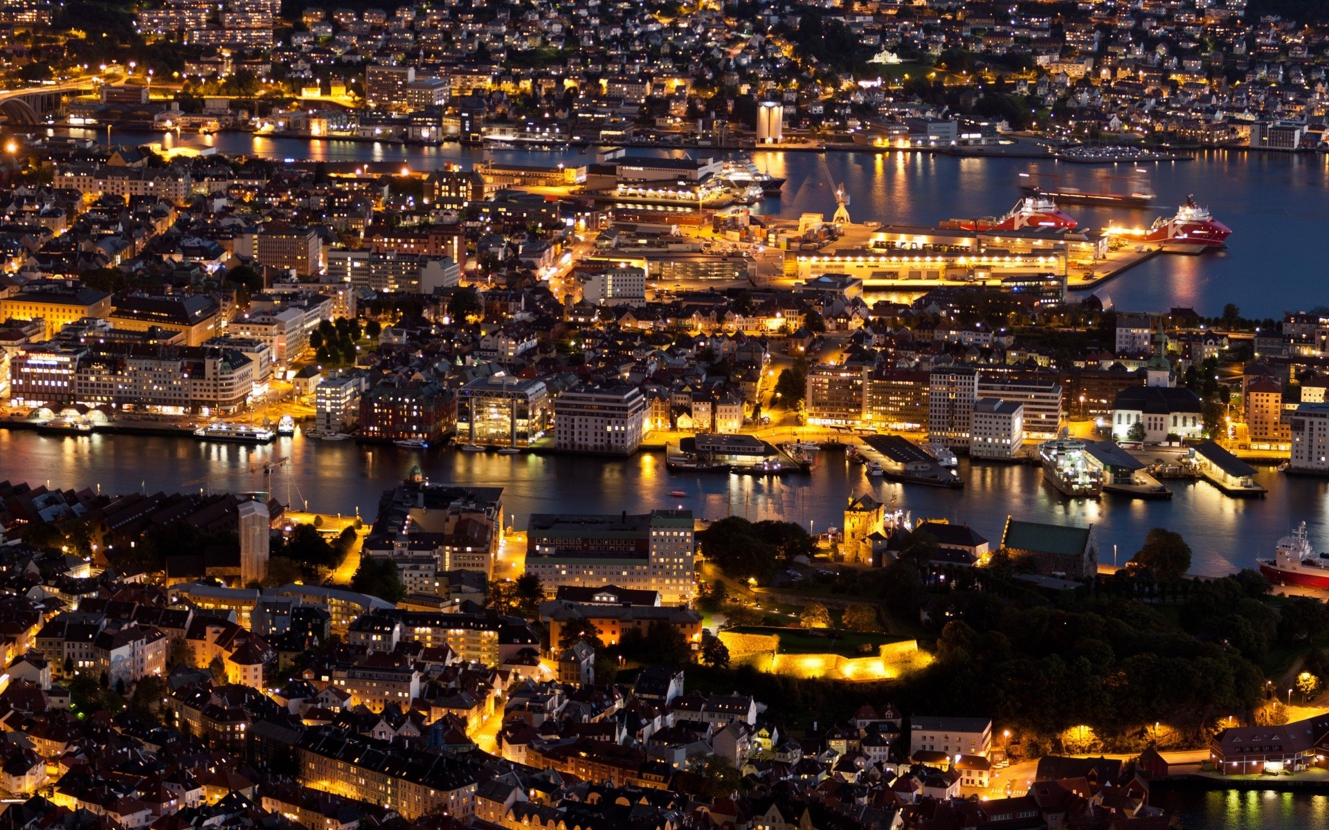 Eine Nachtstadt am Meer