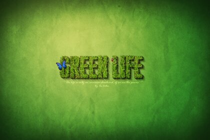 Inschrift aus Grashalmen auf grünem Hintergrund