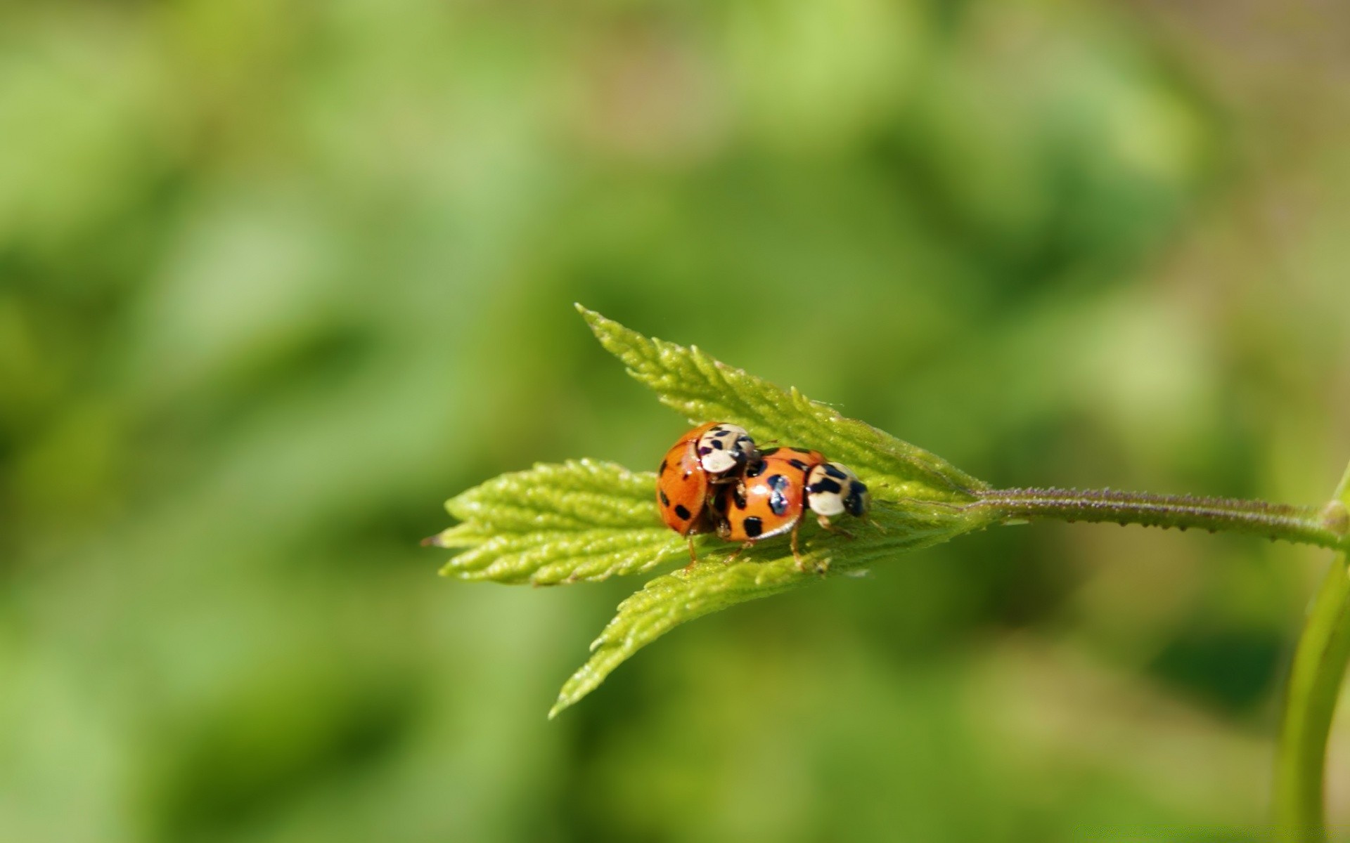 Kleiner Marienkäfer auf verschwommenem Hintergrund
