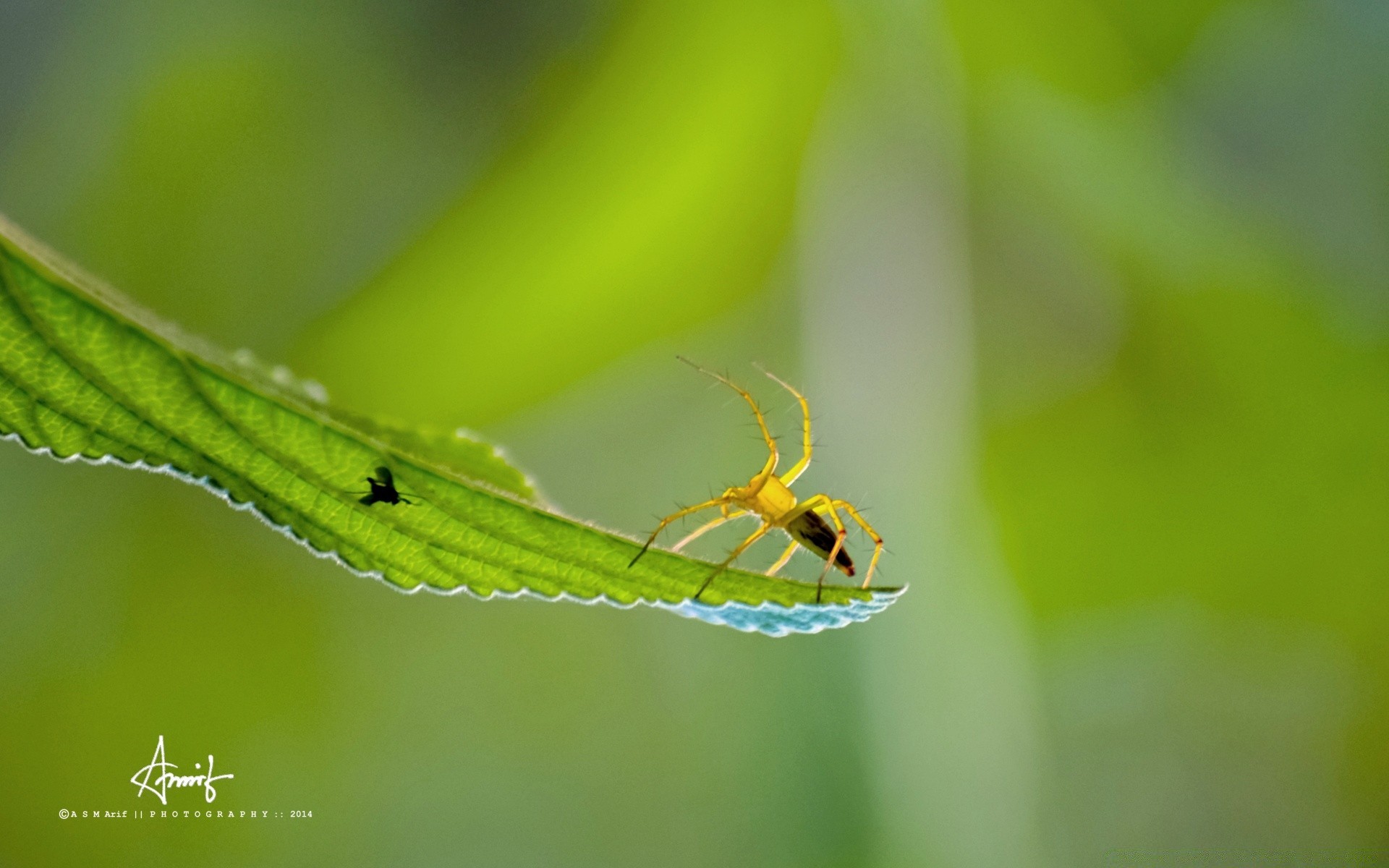 Spinne kriecht nach einem Insekt auf einem Blatt