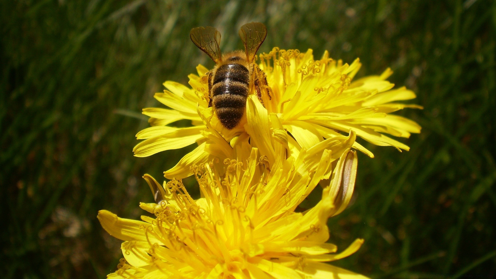 Zartes Bild in rosa Farbtönen mit einer Biene