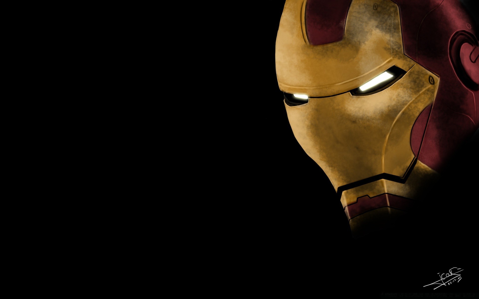 Maske. Iron Man. Held Marvel. Dunkler Hintergrund