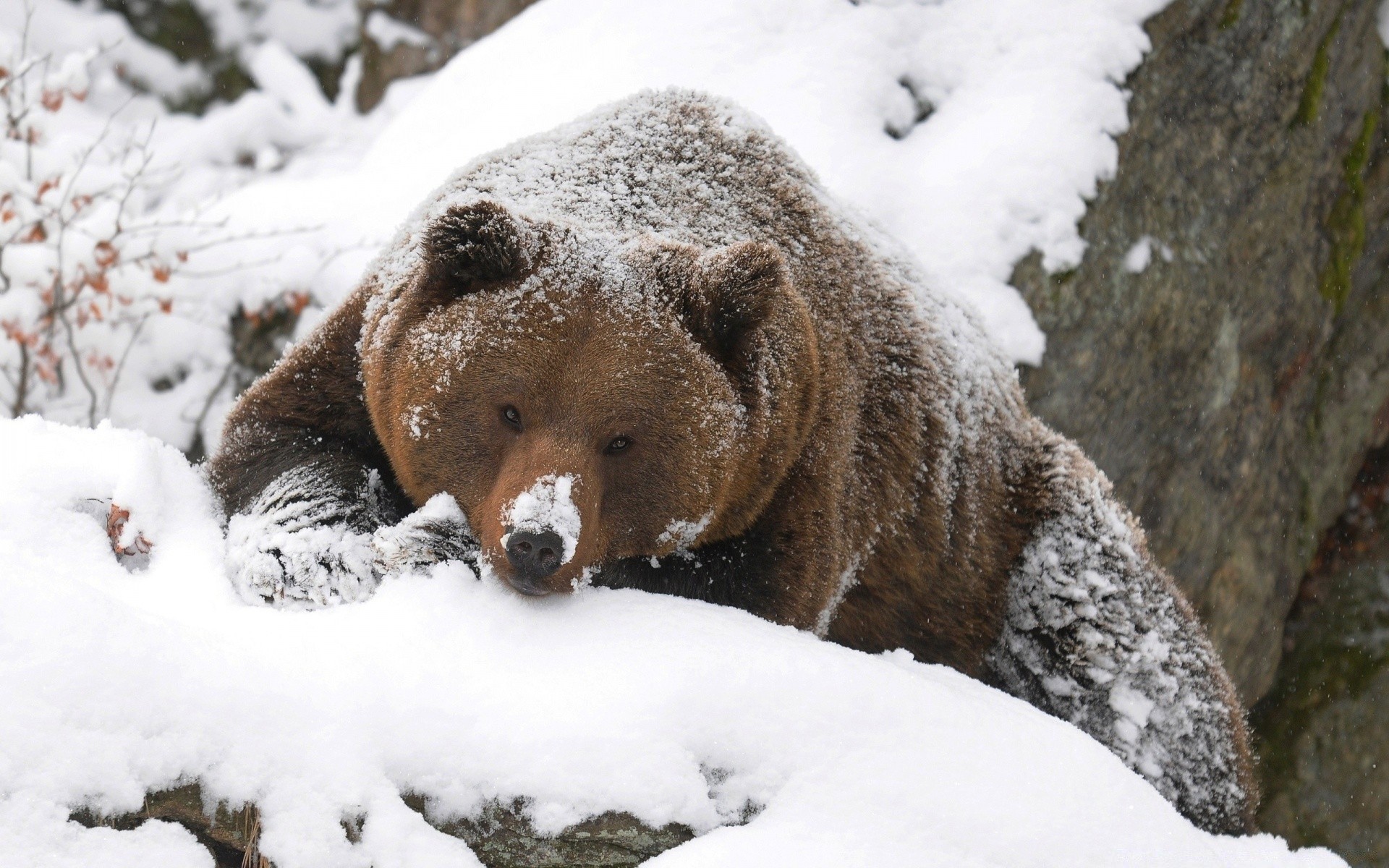 Der Bär wurde hungrig und ging im Winter auf die Jagd