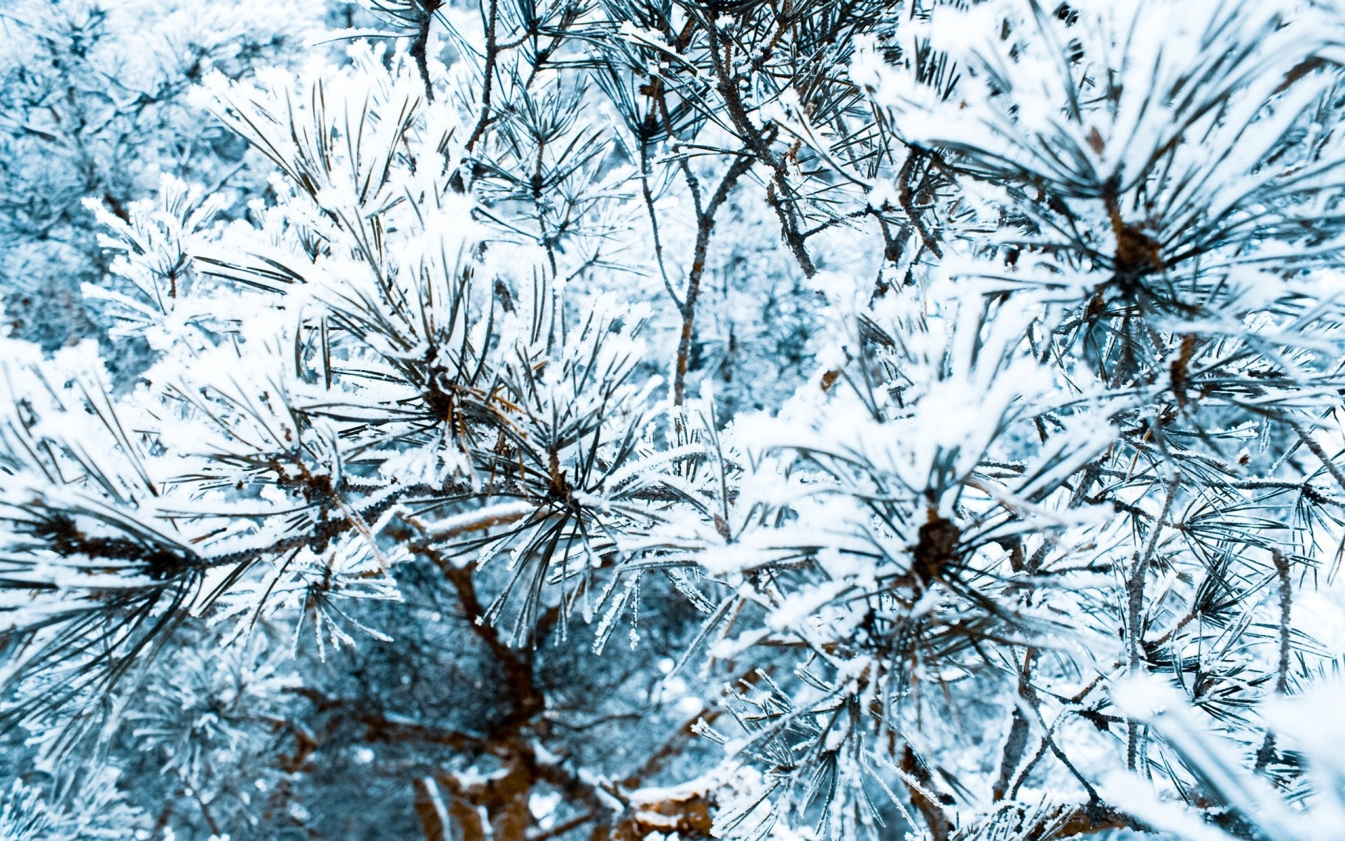 Schöner Weihnachtsbaum mit Schnee im Freien