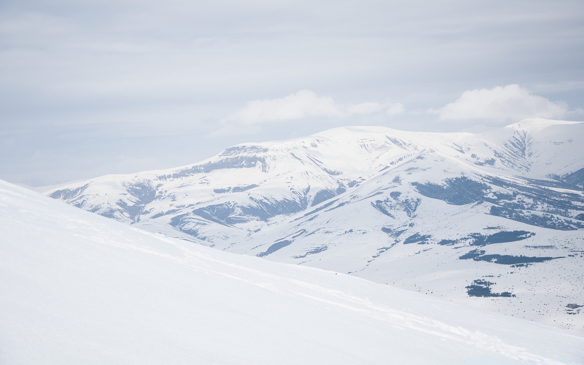 Snowboarder bringt einen schönen Hintergrund vom Sprungbrett