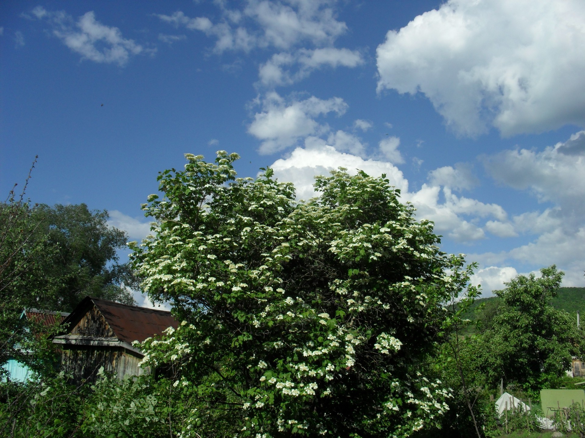 Grüner Baum in voller Blüte an einem Sommertag strahlen die Sonne durch die grünen Zweige des Baumes