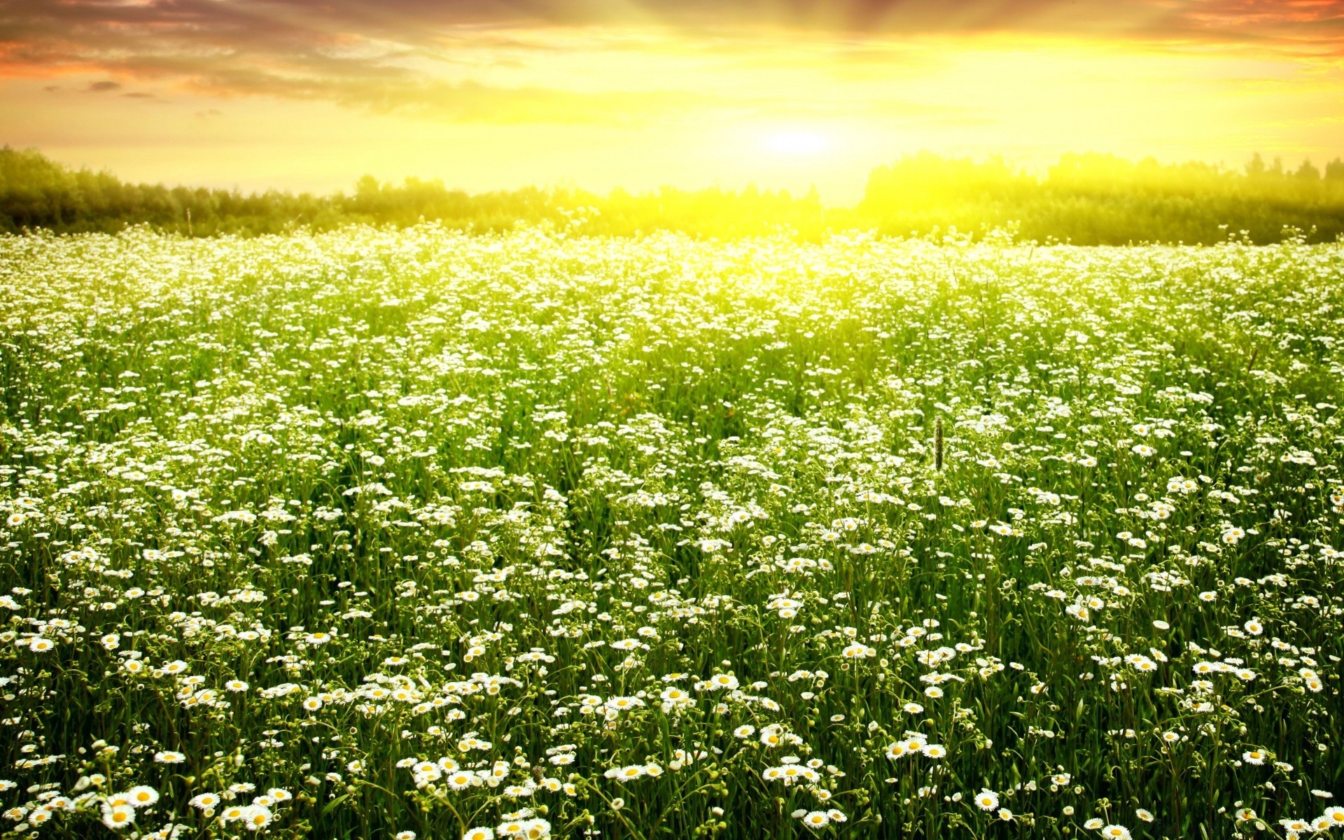 Kamillenfeld unter der Sonne