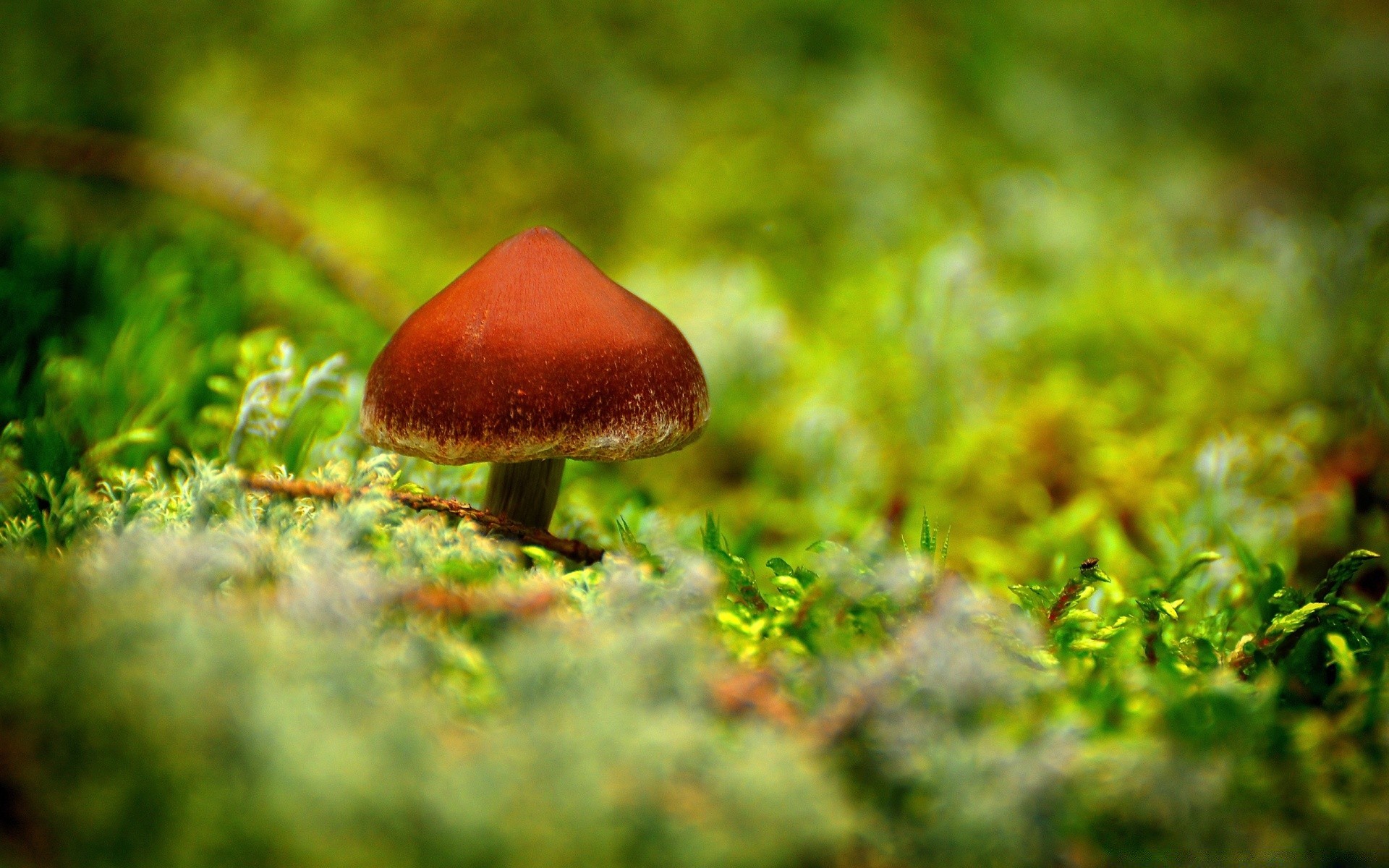Pilz auf grünem Teppich aus Gras
