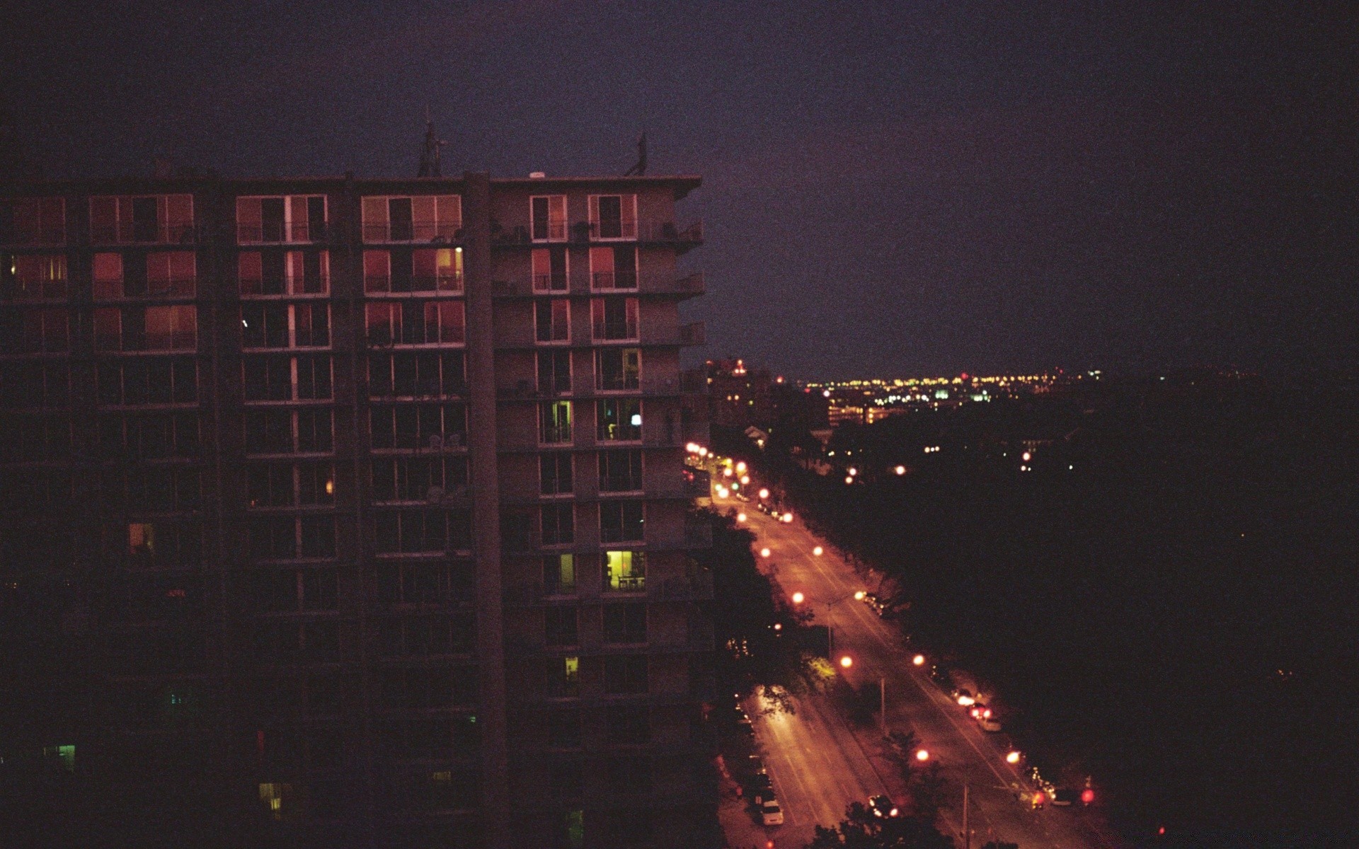Schwarz-Weiß-Foto von Häusern an der Brücke
