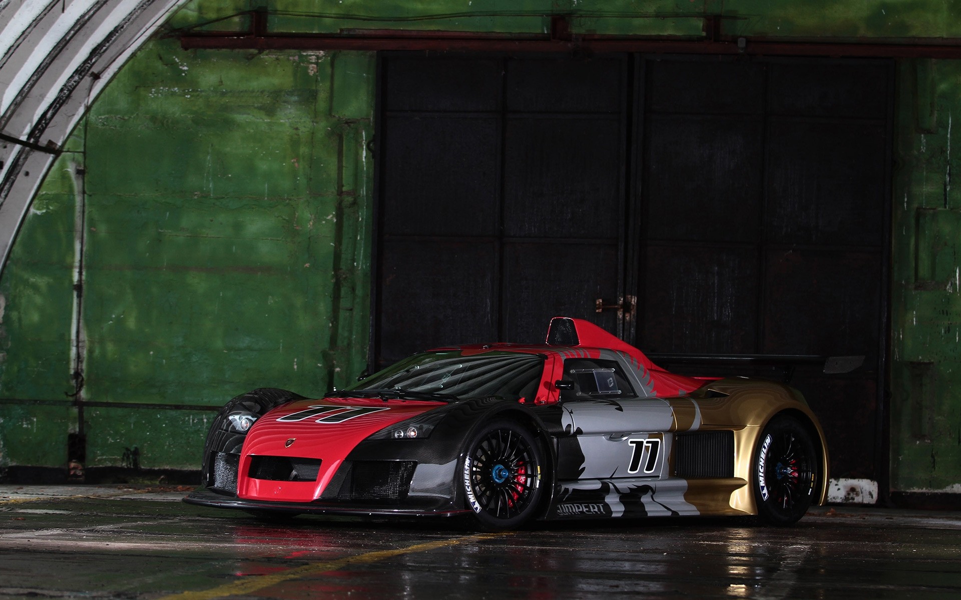 Schwarz-rotes Auto bewegt sich in Richtung Wolken