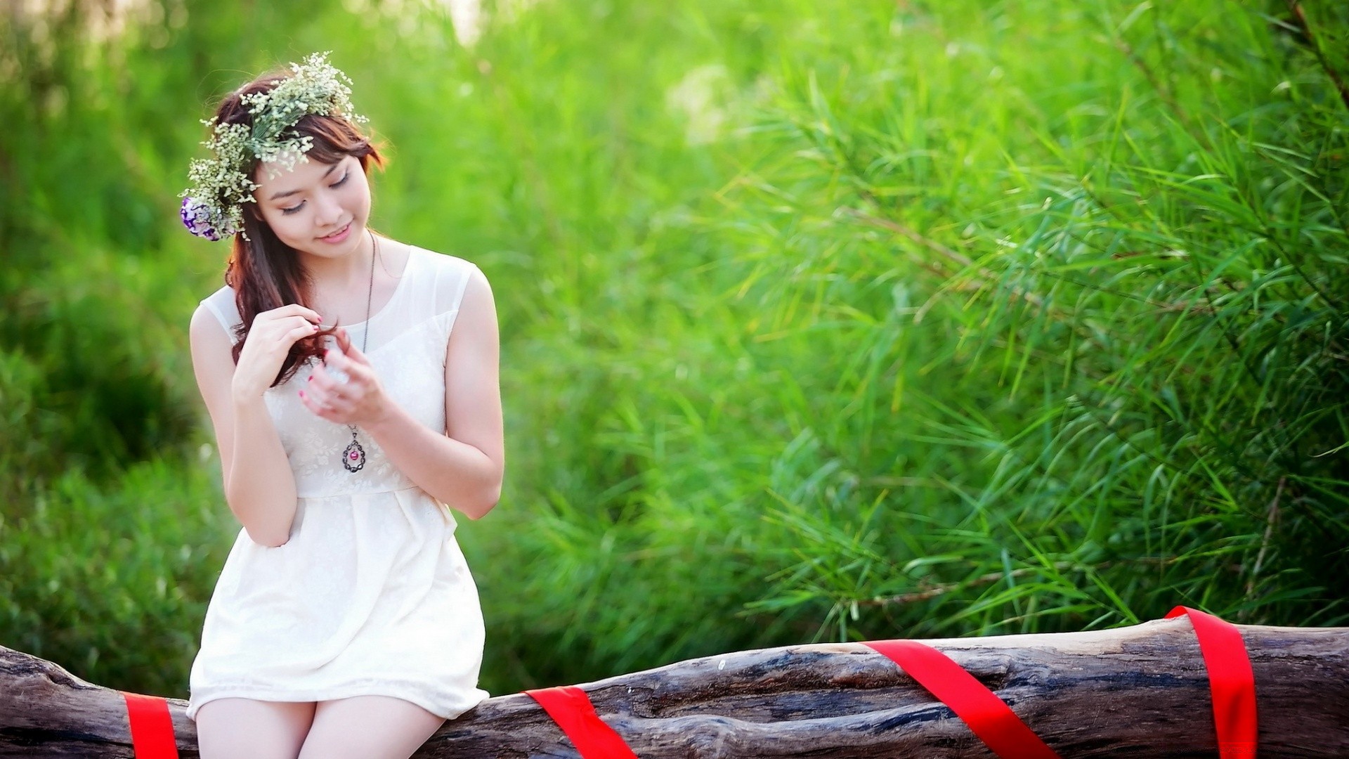 Schönes mädchen mit einem kranz auf dem kopf in der natur