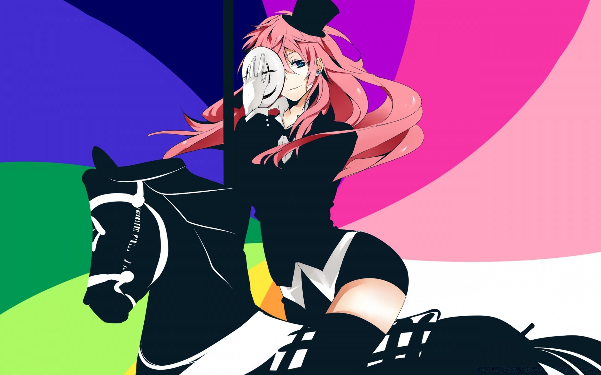 Anime Bild eine Frau auf einem Pferd mit einer Maske