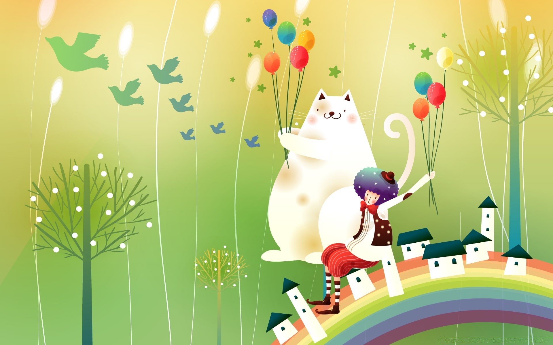 Cartoon-Tapete. Ein Junge und ein Welpe. Winter im Dorf