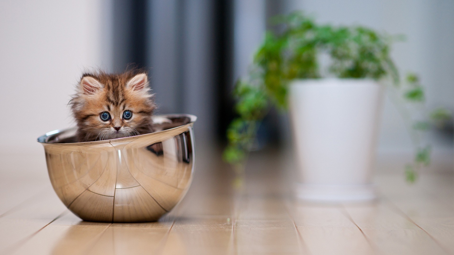 Süßes Kätzchen versteckte sich im Geschirr