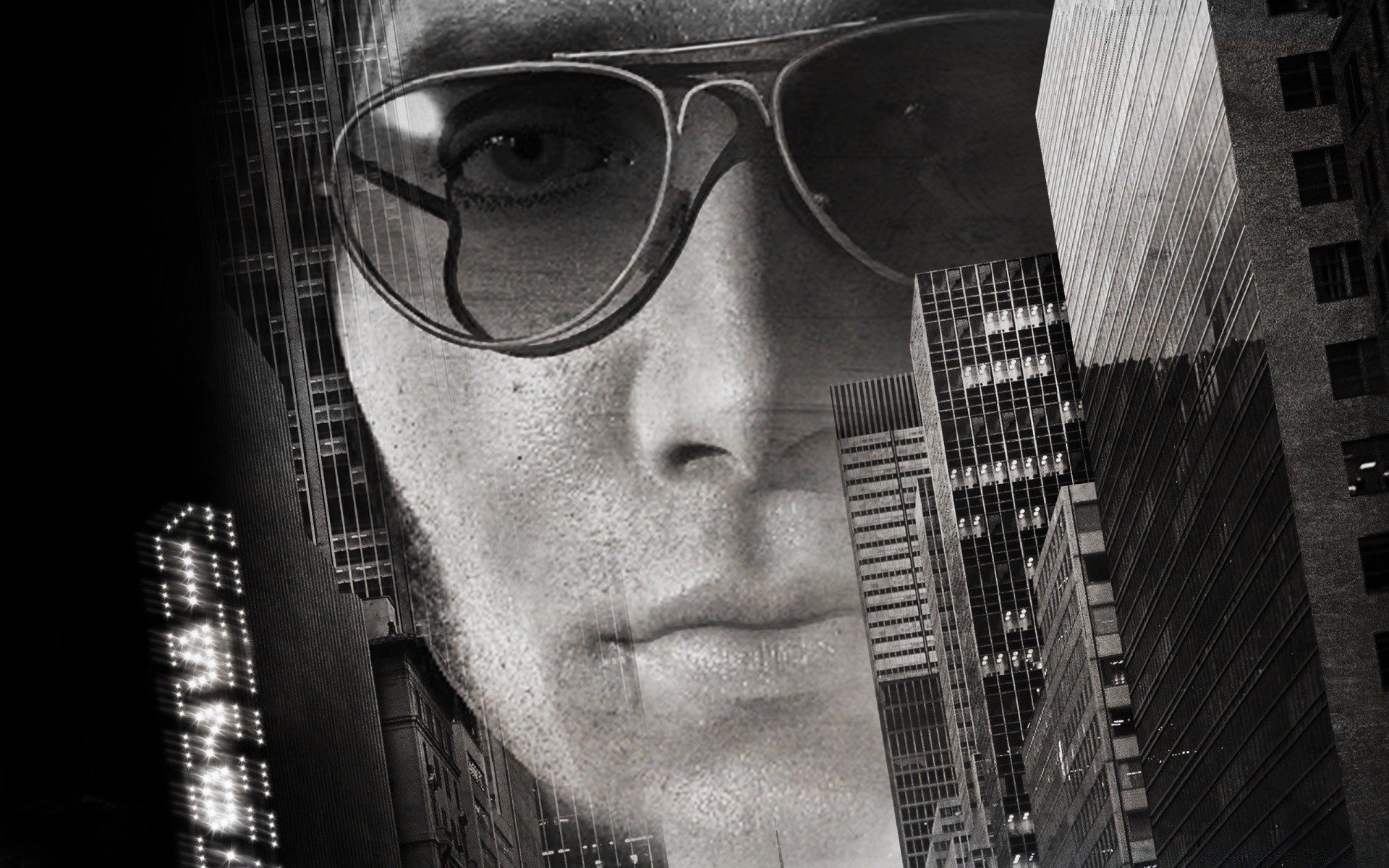 Ein Mann in einer schrecklichen Stadt mit Drachen