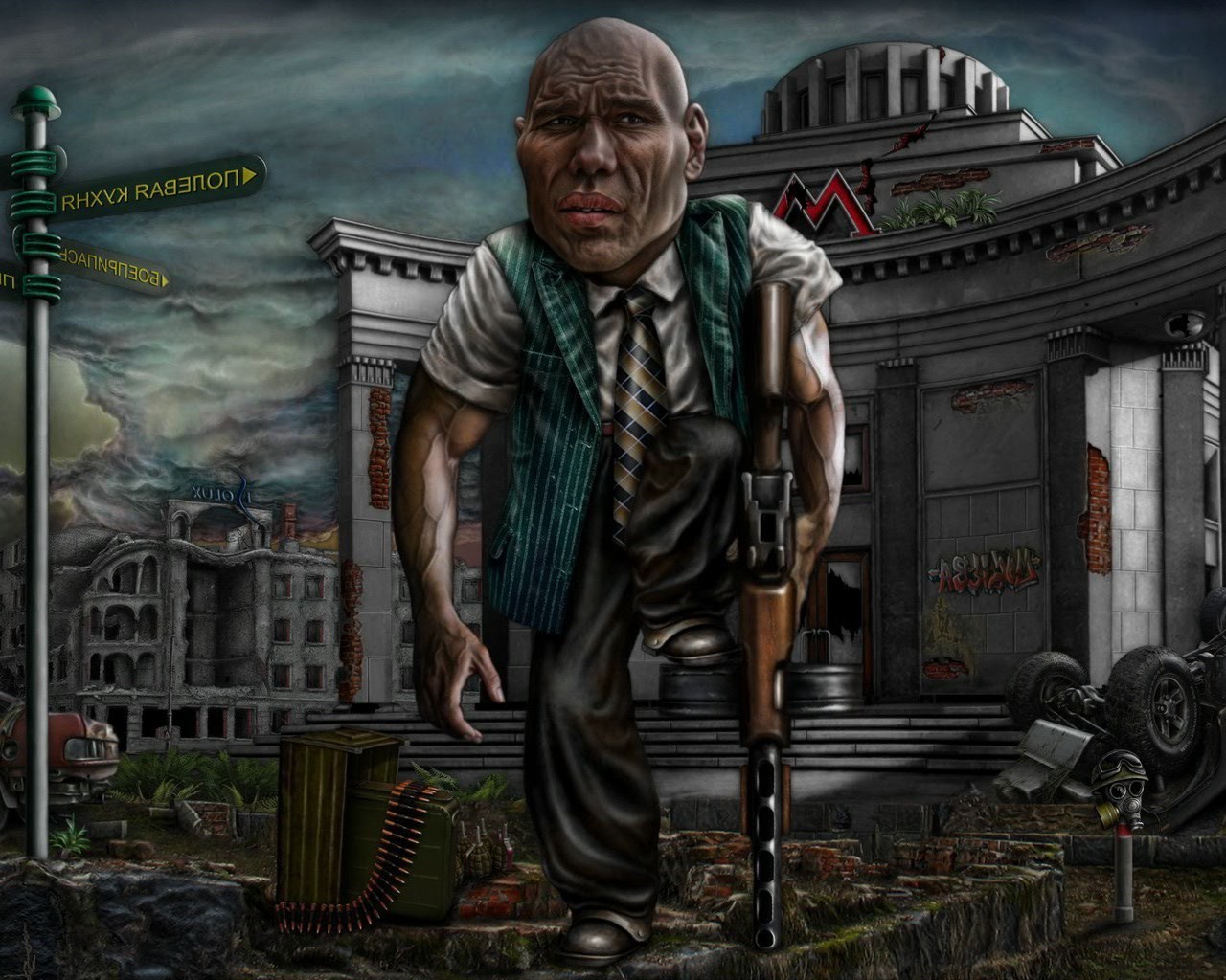 Glatzköpfiger Mann mit einer Waffe in der Hand