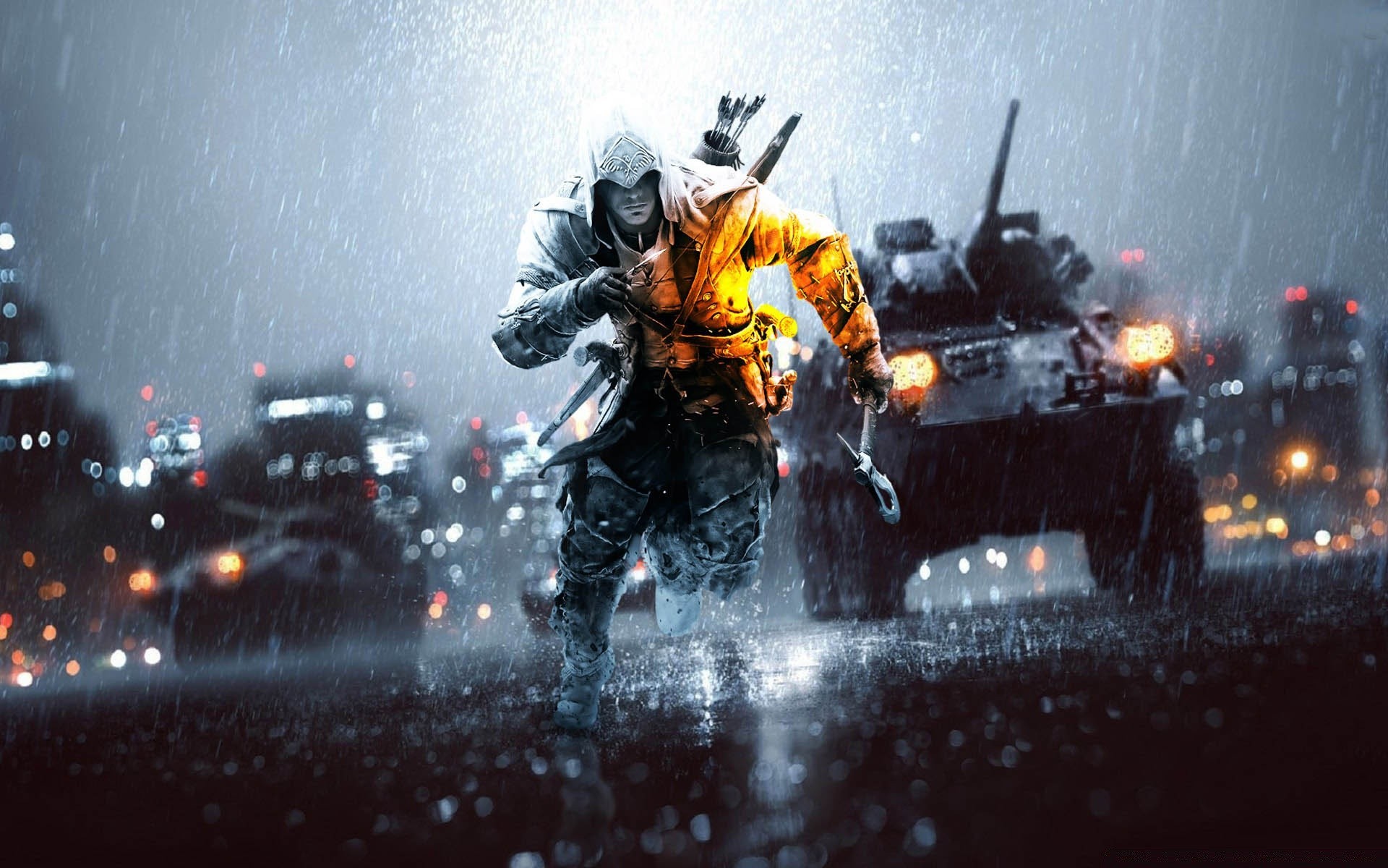Militär auf dem Hintergrund der Lichter der Stadt aus einem Computerspiel