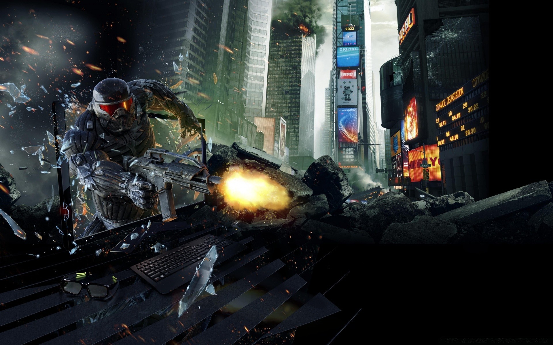 Frame mit Computerspiel mit militärischer Ausrüstung