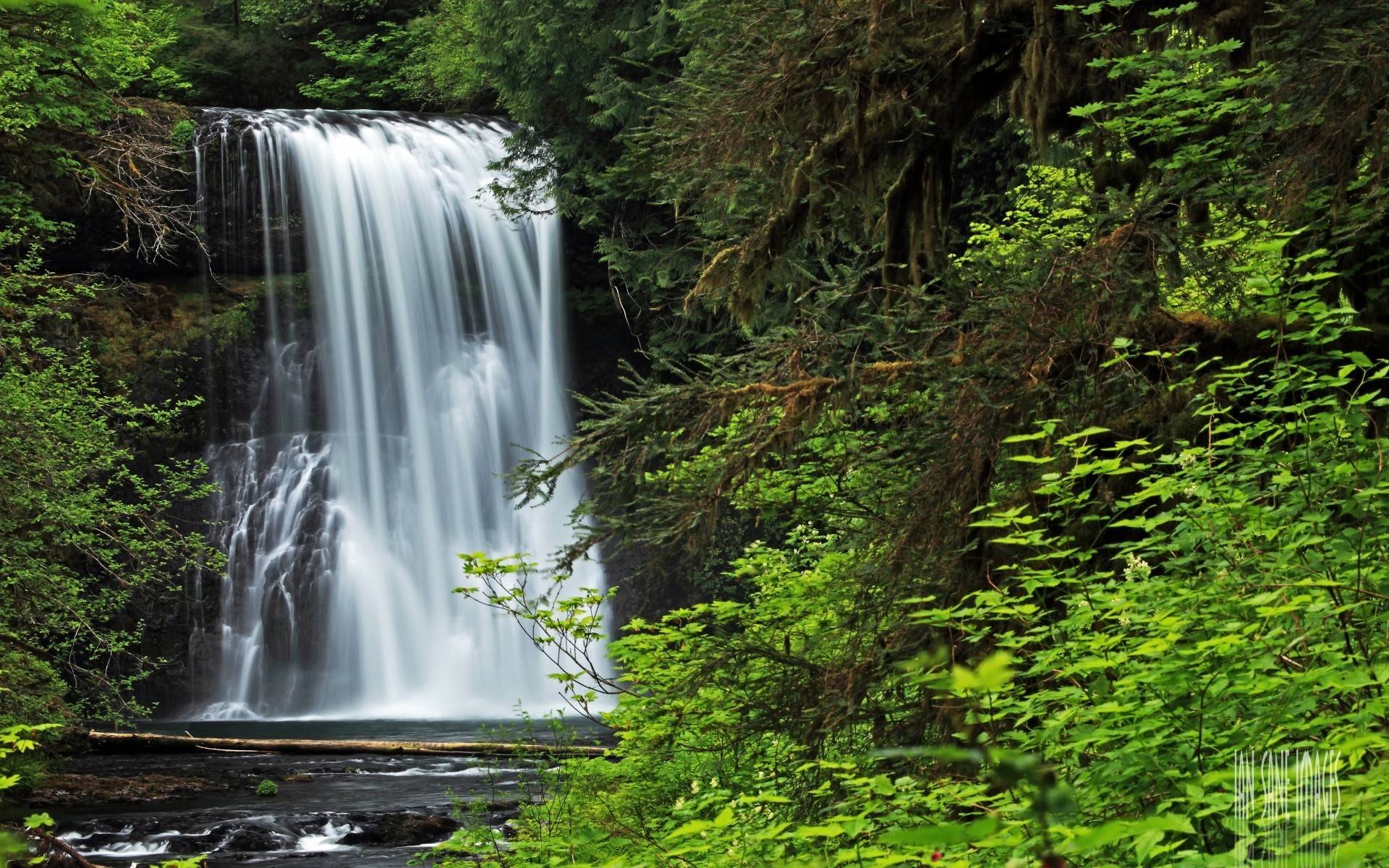 Landschaft. Wasserfall. Gepflegte Bäume. Geschützter Ort