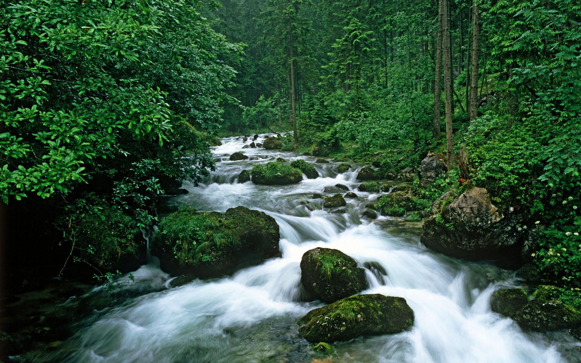 Holzbalkenbrücke vor dem Hintergrund eines Wasserfalls