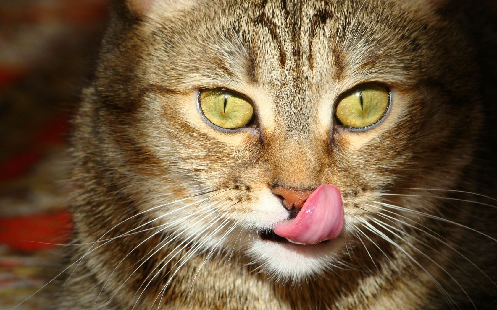 Die Katze zeigt ihre Zunge