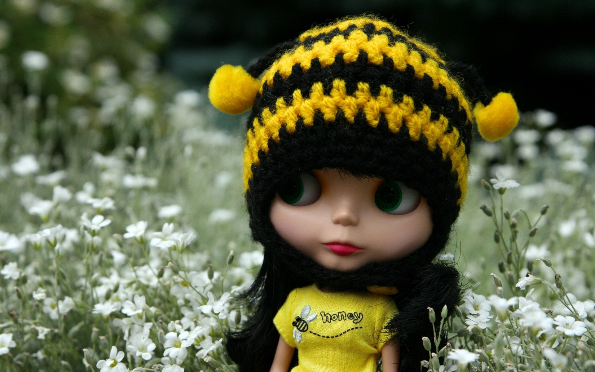 Puppe mit Mütze im freien makro