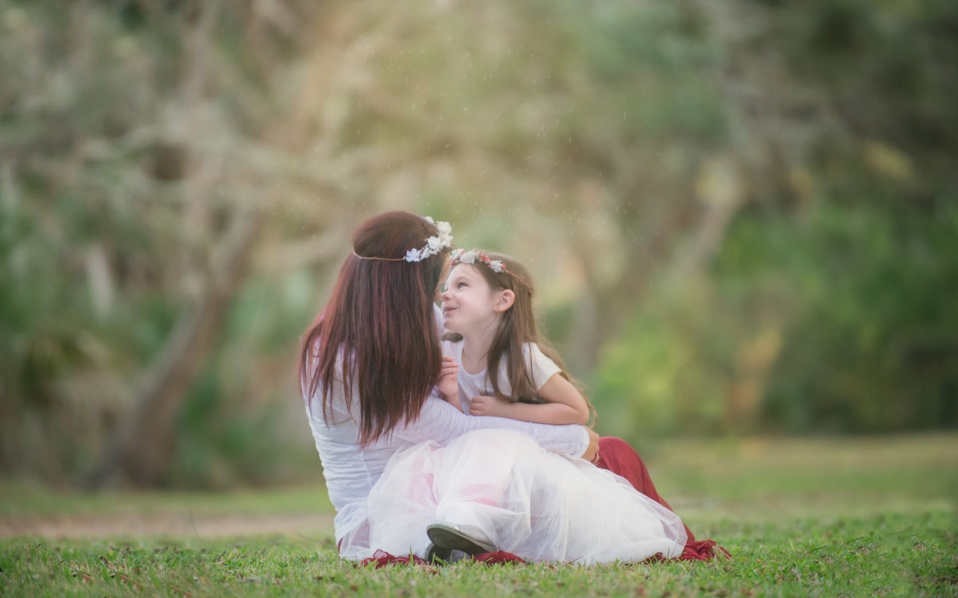 Ein Kind mit einem Kranz liegt auf dem Boden