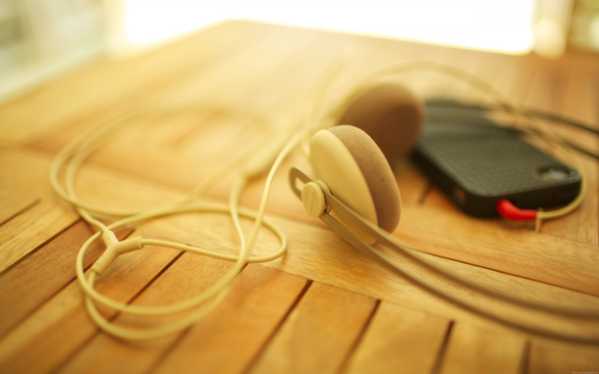 Smartphone mit kabelgebundenen kopfhörern auf dem tischSmartphone mit kabelgebundenen Kopfhörern auf dem Tisch