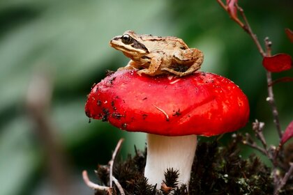 Ein überraschter kleiner Pinguin vor dem Hintergrund seines Schwarms in der Antarktis