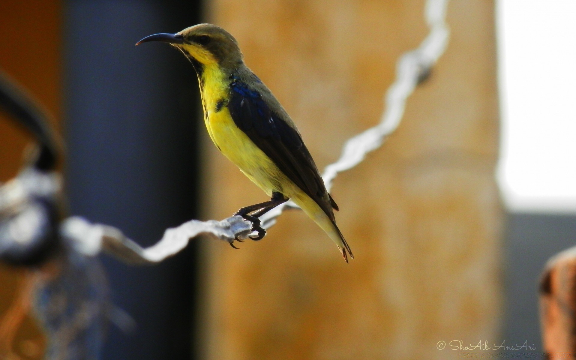 Ein einsamer Vogel wie ein Blatt auf einem Baum