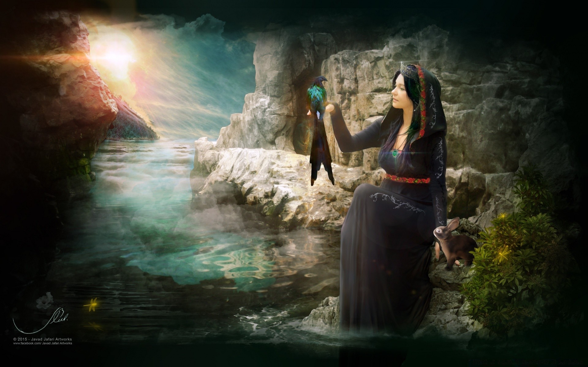 Mystischer Kampf mit einem Mann mit einem Vogel auf der Schulter