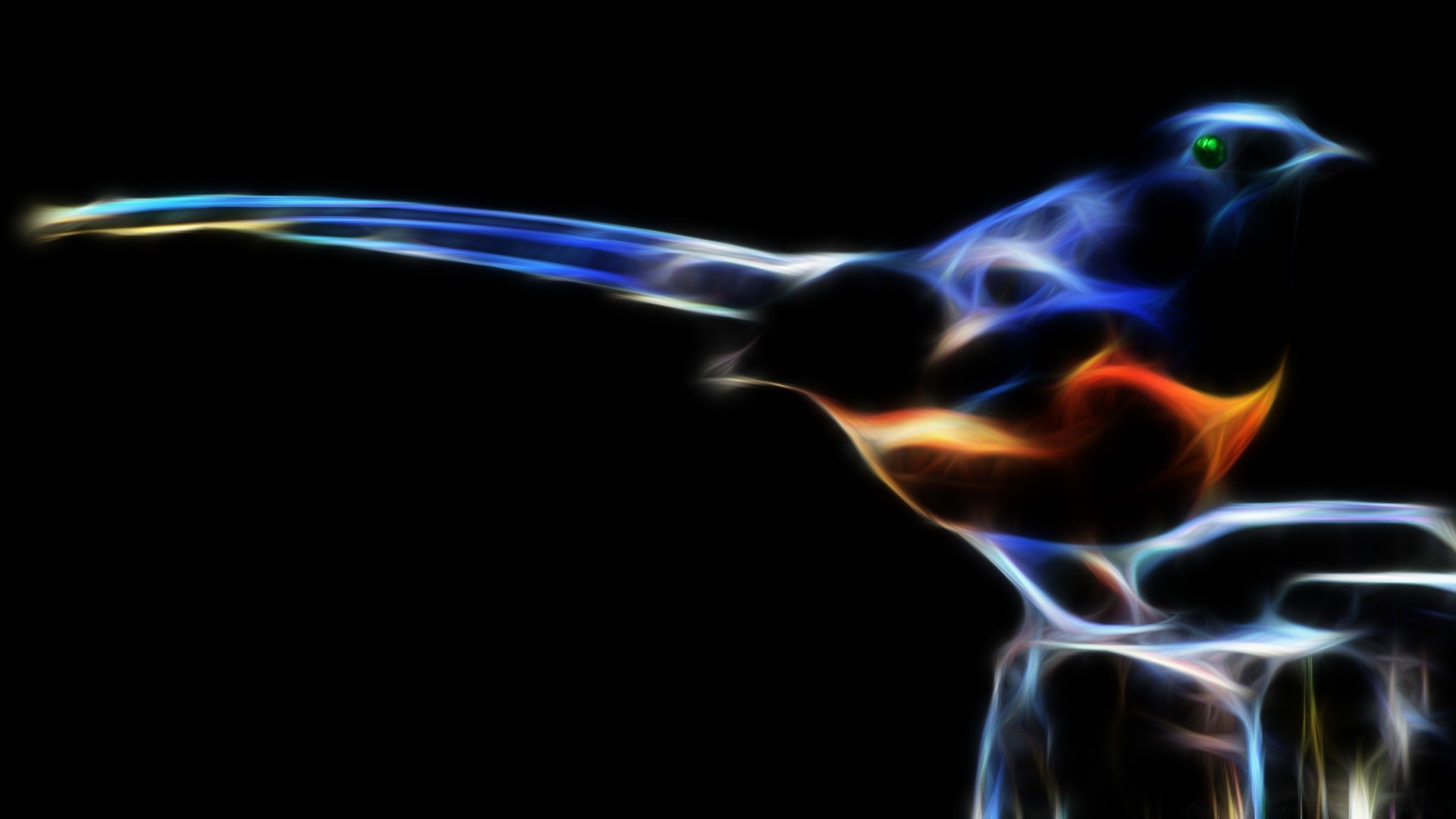 Ein Mädchen, das unter einen blauen Vogel stilisiert ist