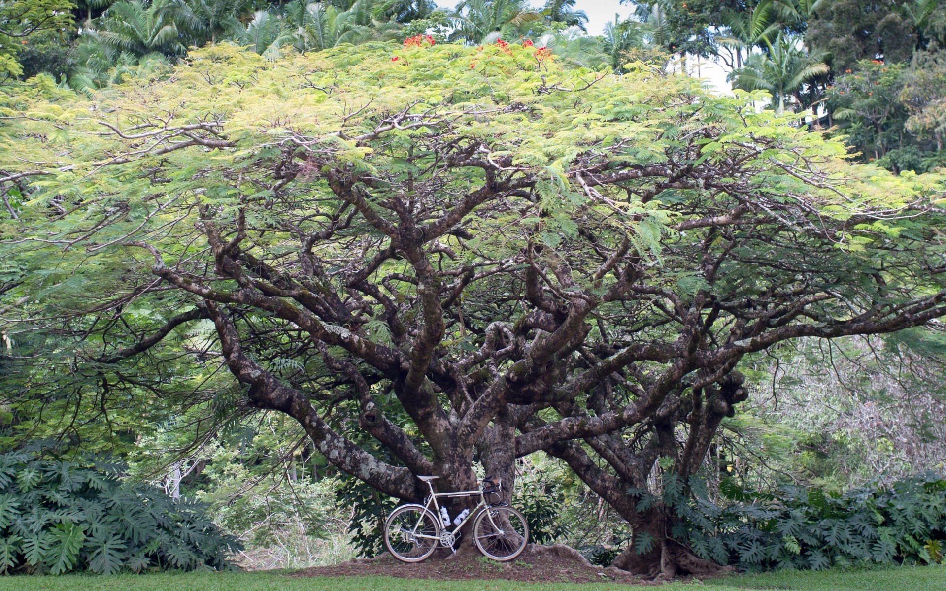 Bäume mit geraden, flachen Stämmen im grünen Wald