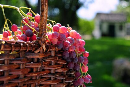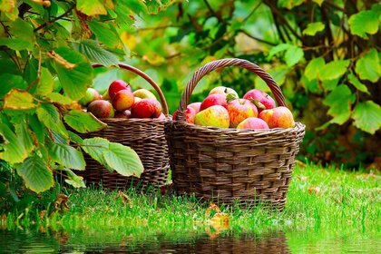 Saftige nektarine mit wassertropfen auf einem weidenkorbhintergrundSaftige Nektarine mit Wassertropfen auf einem Weidenkorbhintergrund