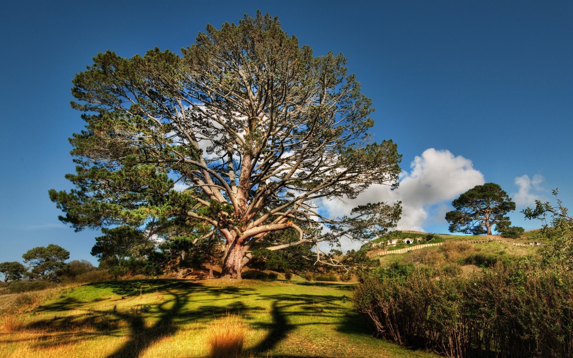 Landschaft die sonne versteckt sich hinter einem baumLandschaft die Sonne versteckt sich hinter einem Baum