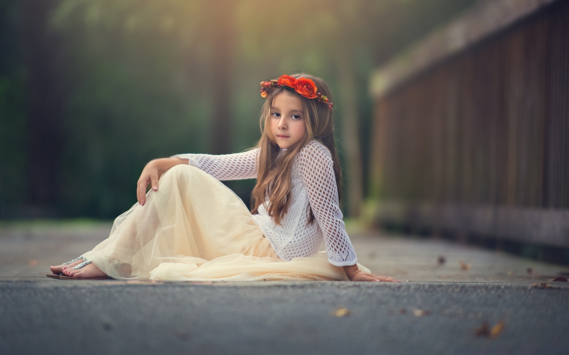 Mädchen auf dem Bett mit einem umsponnenen Zopf und einem Kranz auf dem Kopf