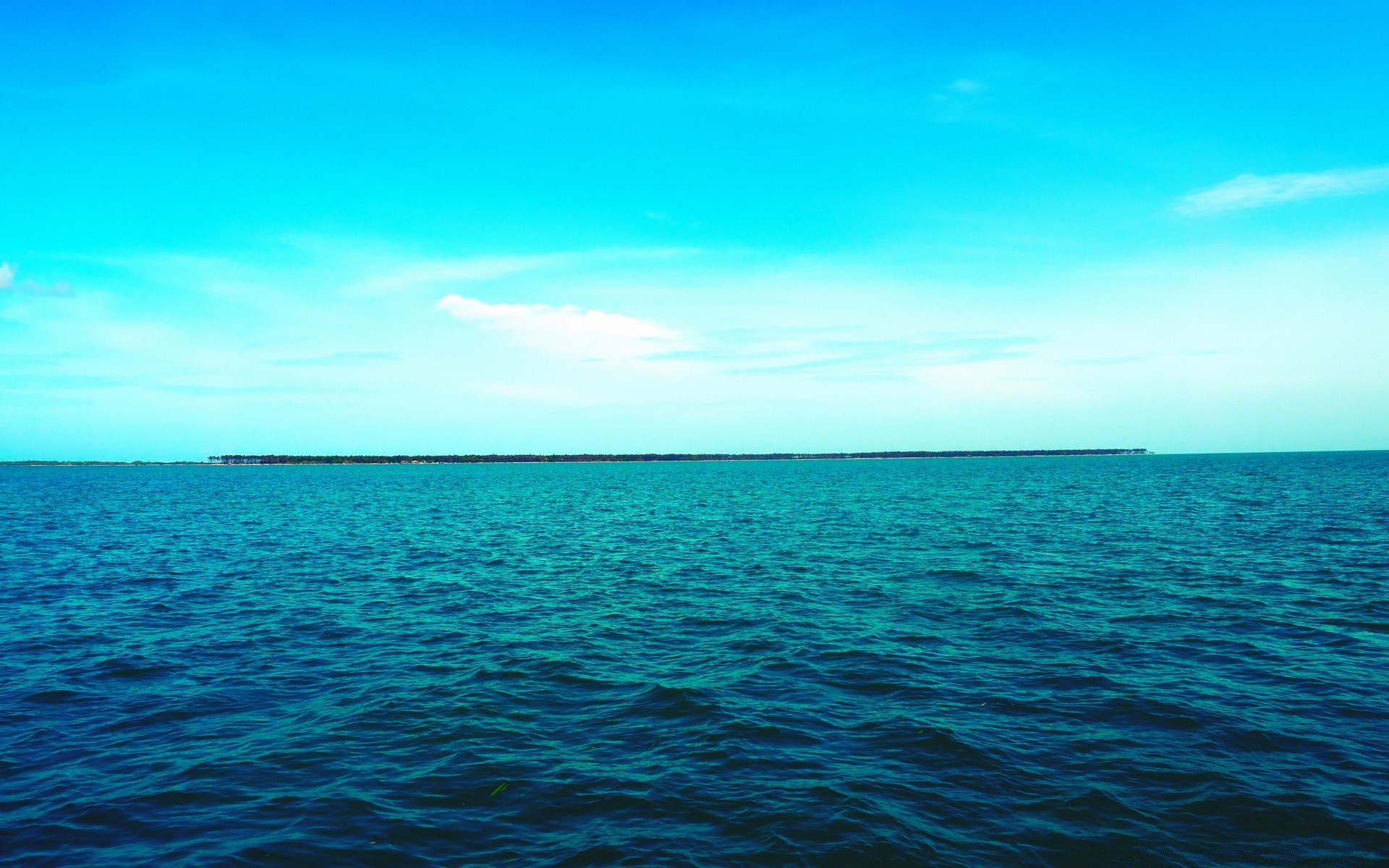 Blauer Ozean auf einem blauen Himmelshintergrund